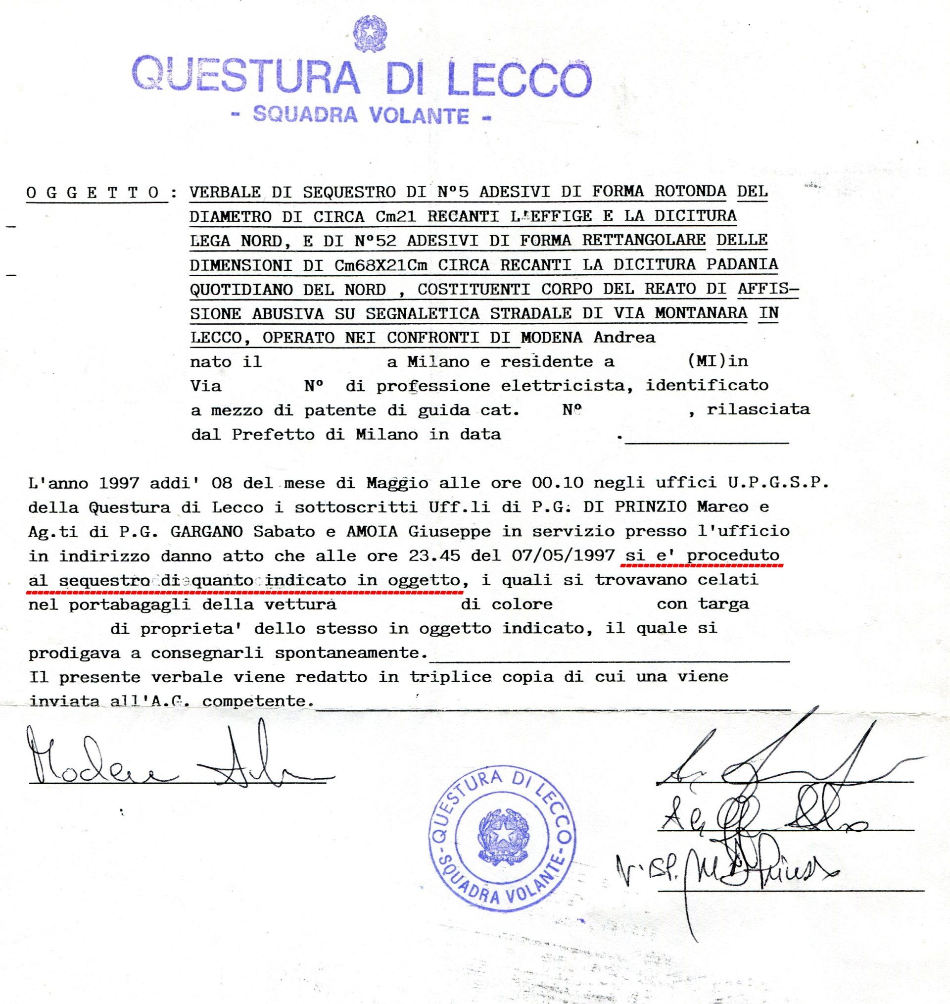 Eravamo in quel di Lecco, "Giovani padani", ad apporre manifesti e materiale elettorale, SONO FIERO di essere stato "indagato" dal regime per questo, intervenuti pure i "servizi"